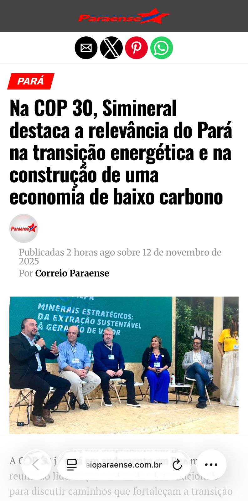 O conteúdo produzido, as falas dos representantes, as entrevistas e a participação em painéis reforçaram a mensagem de que o Pará já integra, de forma estratégica, a economia verde global e a mineração faz parte disso.