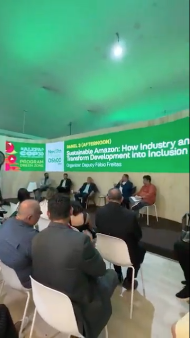 O Simineral, representado por Emerson Rocha, participou do painel “Amazônia Sustentável: Como a indústria promove inclusão e desenvolvimento local”, ao lado do deputado Iran Lima.